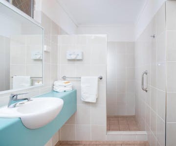 This ground floor, air-conditioned room features TV, a seating area, fridge, microwave and tea and coffee making facilities. It has a desk, ironing facilities and a bathroom with a shower and 1 x Queen Bed and 1 x Single bed